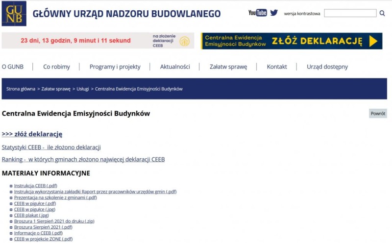 Zgodnie z przepisami ustawy o wspieraniu termomodernizacji remontów oraz centralnej ewidencji emisyjności budynków, właściciele nieruchomości oraz zarządcy budynków i lokali zobowiązani są do złożenia we właściwym urzędzie gminy deklaracji o źródłach ciepła lub źródłach spalania paliw.