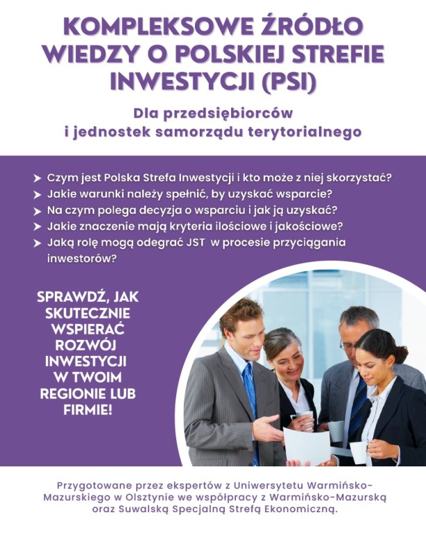 Publikacja powstała we współpracy ekspertów z Uniwersytetu Warmińsko-Mazurskiego w Olsztynie oraz Warmińsko-Mazurskiej i Suwalskiej Specjalnej Strefy Ekonomicznej. Połączenie wiedzy akademickiej i doświadczenia praktycznego instytucji gospodarczych gwarantuje wysoki poziom merytoryczny opracowania.