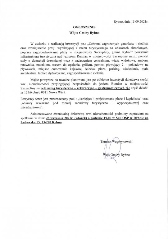 W dniu 30.08.2021r. dokonano odbioru lamp solarnych zakupionych w ramach funduszu sołeckiego przez sołectwa: Rybno, Truszczyny, Hartowiec, Jeglia, Grądy, Tuczki, Szczupliny.