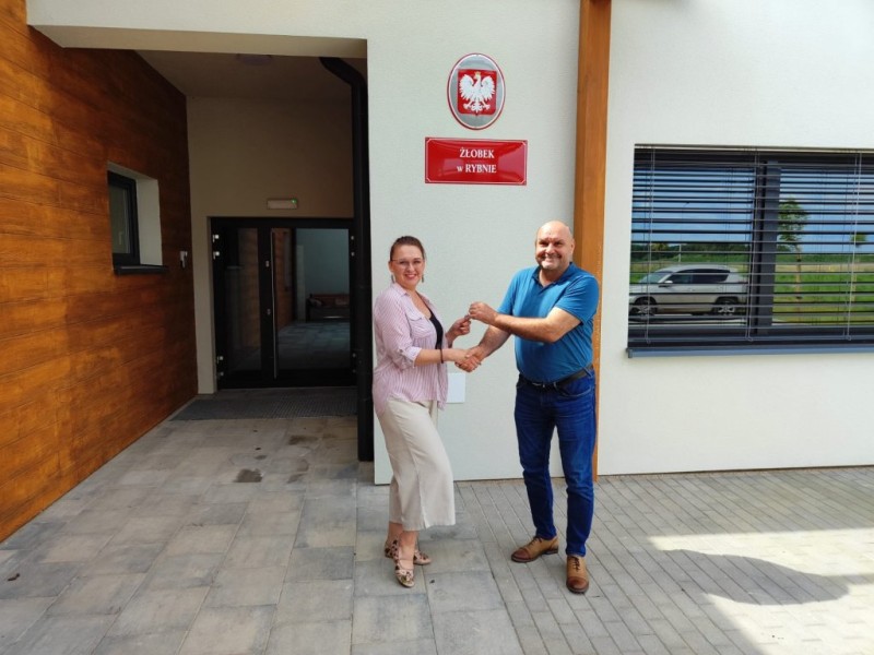 W dniu 31 lipca 2025 r. odbyło się uroczyste przekazanie kluczy do nowo powstałego Żłobka w Rybnie. Klucze zostały przekazane nowej pani dyrektor, Pani Monice Bukowskiej, która od sierpnia będzie kierować placówką.