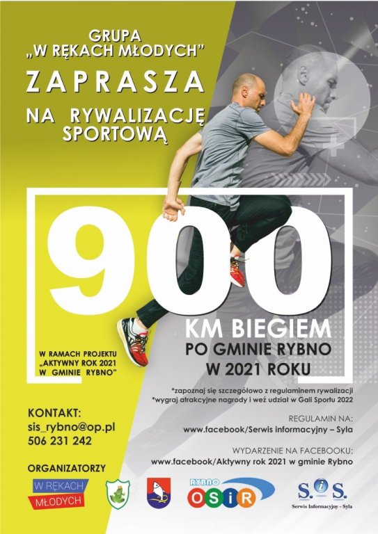 Grupa Młodzieży „W Rękach Młodych”, Stowarzyszenie „Żabianka”, Gmina Rybno oraz OSiR Rybno ma zaszczyt zaprosić na VI rywalizację biegową pn. „900 km biegiem po Gminie Rybno w 2021 roku”, której głównym celem jest popularyzowanie zdrowego trybu życia oraz upowszechnianie biegania jako najprostszej formy aktywności.