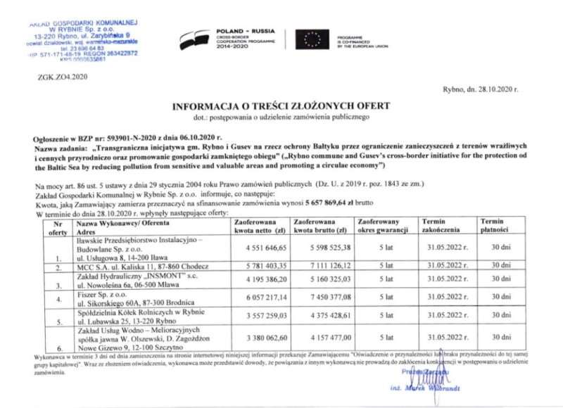 W dniu 23.10.2020 r. został zakończony i przekazany do użytkowania projekt pn. Aktywne znaki D-6 na czterech przejściach dla pieszych na drodze wojewódzkiej nr 538 zrealizowany z „Programu ograniczenia przestępczości i aspołecznych zachowań, Razem Bezpieczniej im. Władysława Stasiaka na lata 2018 - 2020" Koordynowanego przez Ministra Spraw Wewnętrznych i Administracji.
