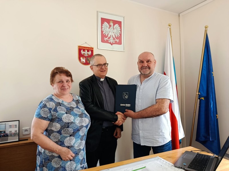 Dnia 10 czerwca 2025 roku, w Urzędzie Gminy Rybno odbyło się podpisanie dwóch umów na udzielenie dotacji celowych z budżetu Gminy Rybno na prace konserwatorskie i roboty budowlane przy zabytkowym budynku dawnego kościoła parafialnego i plebanii w miejscowości Rybno.
