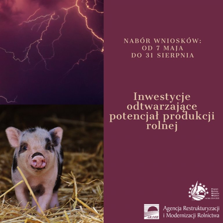 Od czwartku 7 maja rolnicy, którzy ponieśli w gospodarstwach straty spowodowane klęskami żywiołowymi bądź wystąpieniem afrykańskiego pomoru świń, mogą składać w ARiMR wnioski o przyznanie pomocy w ramach działania „Inwestycje odtwarzające potencjał produkcji rolnej”. – Termin naboru mija z końcem sierpnia – informuje Paweł Mucha, rzecznik prasowy ARiMR.