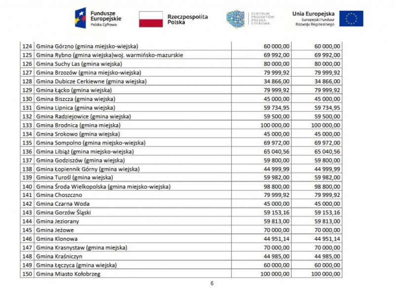 W dniu 15.04.2020 r. Gmina Rybno znalazła się na liście wyników Grantowych wybranych do dofinansowania w ramach Program Operacyjnego Polska Cyfrowa. Oś priorytetowa I. Powszechny dostęp do szybkiego internetu Działanie 1.1 „Wyeliminowanie terytorialnych różnic w możliwości dostępu do szerokopasmowego internetu o wysokich przepustowościach”.
