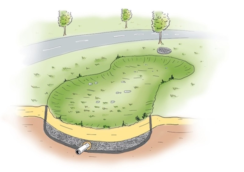W naszej gminie, tuż obok budynku przedszkola, znajduje się niezwykłe miejsce – infiltracyjna niecka retencyjna. Choć może wydawać się jedynie delikatnym zagłębieniem w ziemi, tak naprawdę pełni bardzo ważną funkcję. To naturalny system, który pomaga gromadzić wodę deszczową, oczyszczać ją i stopniowo oddawać do gleby.