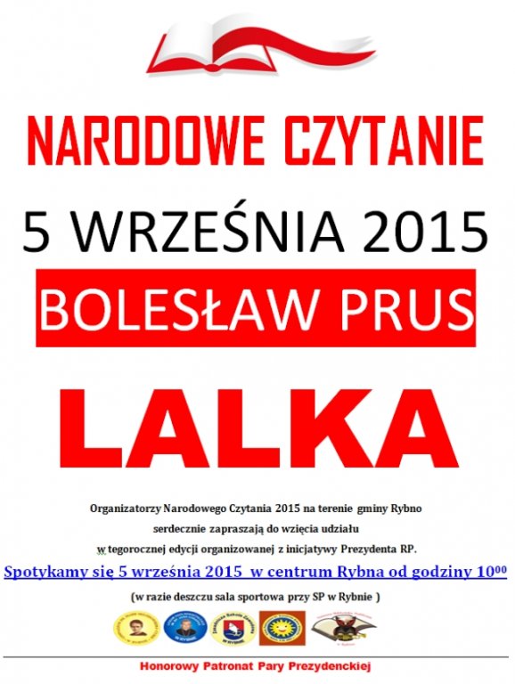 W dniu 5 września 2015 roku odbędzie się 4 edycja ogólnopolskiej akcji Narodowe Czytanie, podczas której będziemy razem czytali powieść Bolesława Prusa „Lalka”.