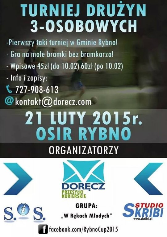 W dniu 21-02-2015 roku w hali sportowej OSiR w Rybnie odbędzie się turniej piłki nożnej halowej. Turniej o tyle ciekawy jak i w nowej formule, w której nie był jeszcze rozgrywany. Organizatorzy przewidują, że do tego turnieju zgłoszą się co najmniej 32 drużyny. Turniej będzie bardzo ciekawy ale i również spontaniczny.