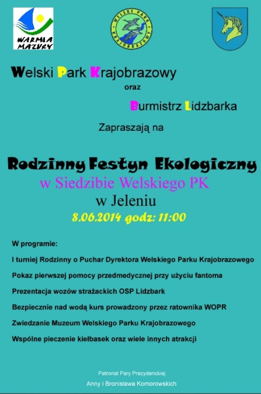 Dyrekcja Welskiego Parku Krajobrazowego ma zaszczyt zaprosić dzieci i młodzież wraz z rodzicami na obchody XVI Warmińsko- Mazurskich Dni Rodziny pod hasłem: "Rodzina fundamentem życia społecznego". Impreza odbędzie się 8 czerwca 2014 r. o godzinie 11:00 w siedzibie Parku w Jeleniu.