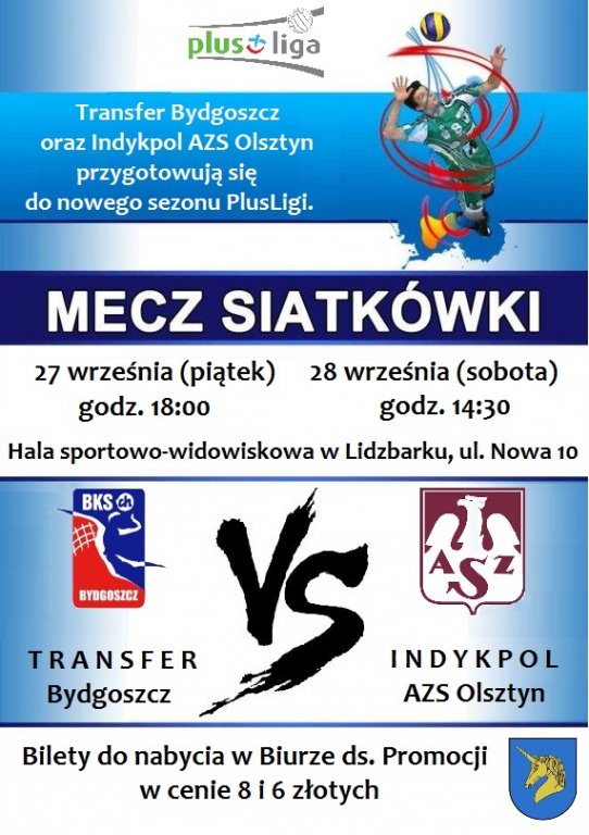 Szanowni mieszkańcy Gminy Rybno, a w szczególności sympatycy piłki siatkowej. Informujemy, iż w ramach przygotowań do nowego sezonu PlusLigi 2013/2014 piłki siatkowej mężczyzn w Lidzbarku odbędzie się mecz towarzyski AZS Olsztyn - Transfer Bydgoszcz.