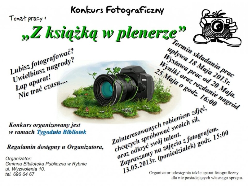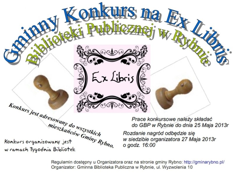 Po raz dziesiąty Stowarzyszenie Bibliotekarzy Polskich organizuje, w dniach 8-15 maja 2013 r., Tydzień Bibliotek - program promocji czytelnictwa i bibliotek. Gminna Biblioteka Publiczna w Rybnie również włączyła się w tę ogólnopolską akcję.