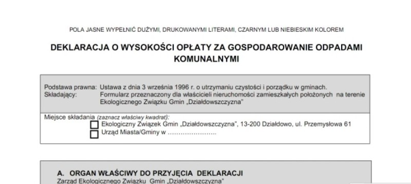 W Dzienniku Urzędowym Województwa Warmińsko-Mazurskiego opublikowane zostały Uchwały Zgromadzenia Ekologicznego Związku Gmin "Działdowszczyzna" regulujące kwestię wysokości opłat za odbiór odpadów komunalnych.