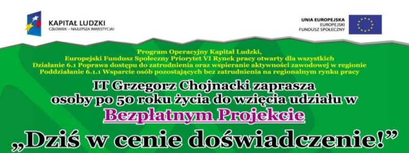 Firma IT Grzegorz Chojnack, realizować będzie projekt skierowany do osób bezrobotnych i długotrwale bezrobotnych po 50 roku życia z wykształceniem max. średnim, które mają problemy z odnalezieniem się na rynku pracy.