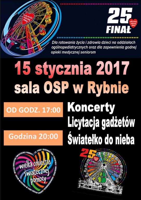 W dniu 15 stycznia 2017 r. odbędzie się 25 finał Wielkiej Orkiestry Świątecznej Pomocy.