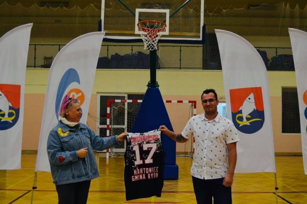 W czwartek, 5 listopada 2020r. w hali Ośrodka Sportu i Rekreacji w Rybnie odbyło się wręczenie strojów sportowych dla drużyny ISKRA BASKET założonej przez mieszkańca Hartowca – Michała Kowalkowskiego.