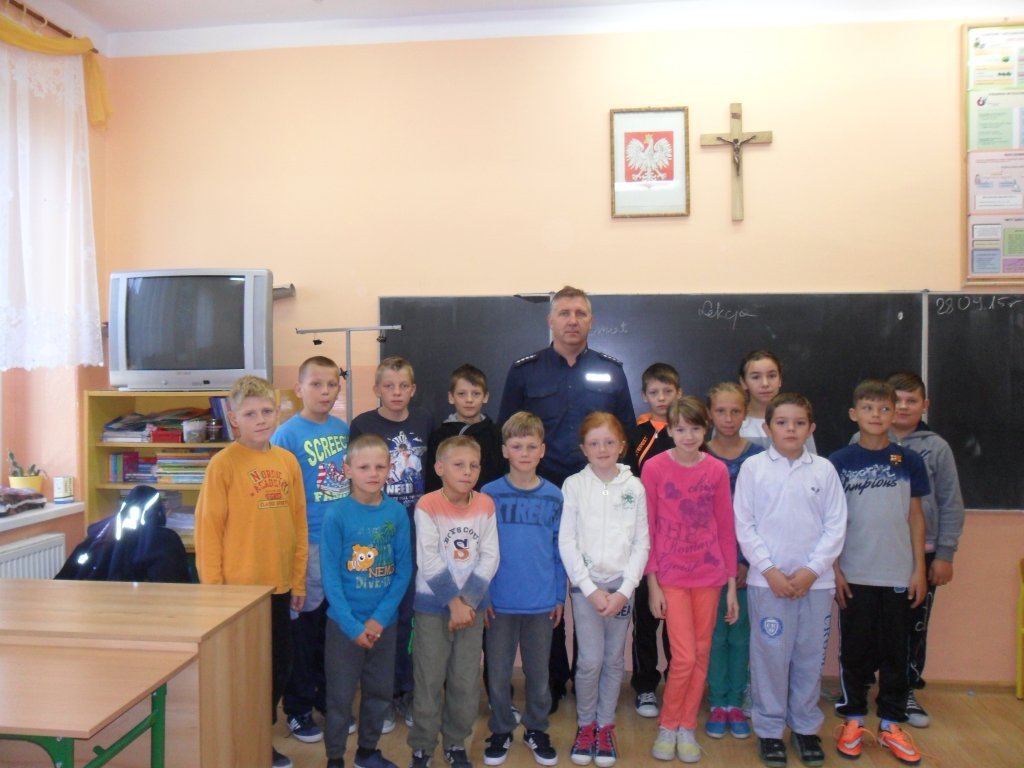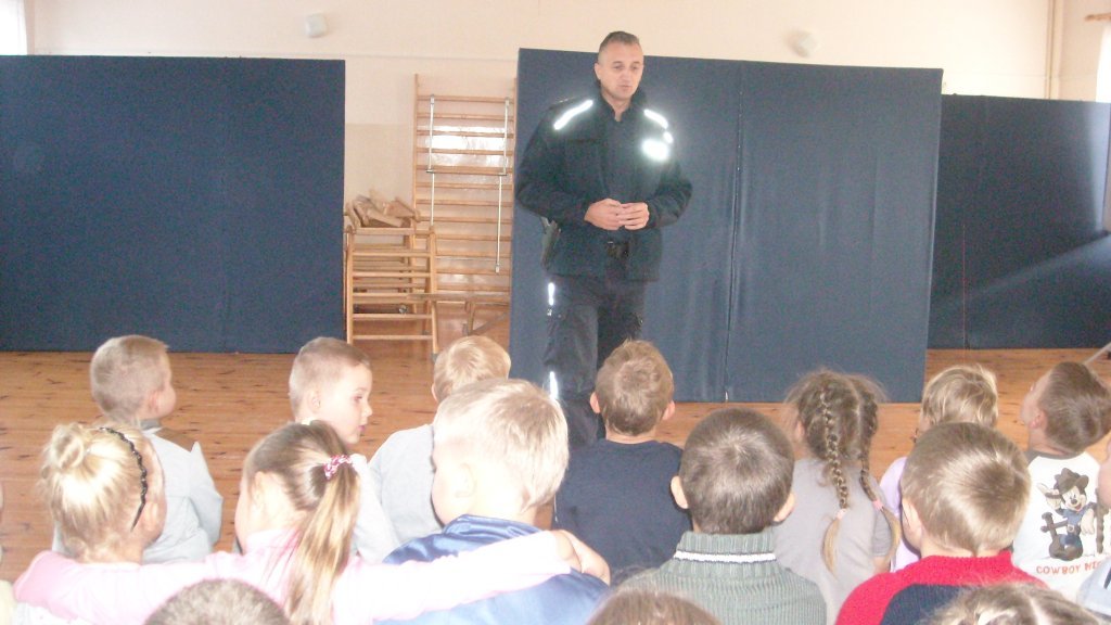 Dla pełniejszego dotarcia do młodego odbiorcy Pani dyrektor Lucyna Nowakowska zaprosiła do szkoły funkcjonariuszy policji z Posterunku Policji w Rybnie.
