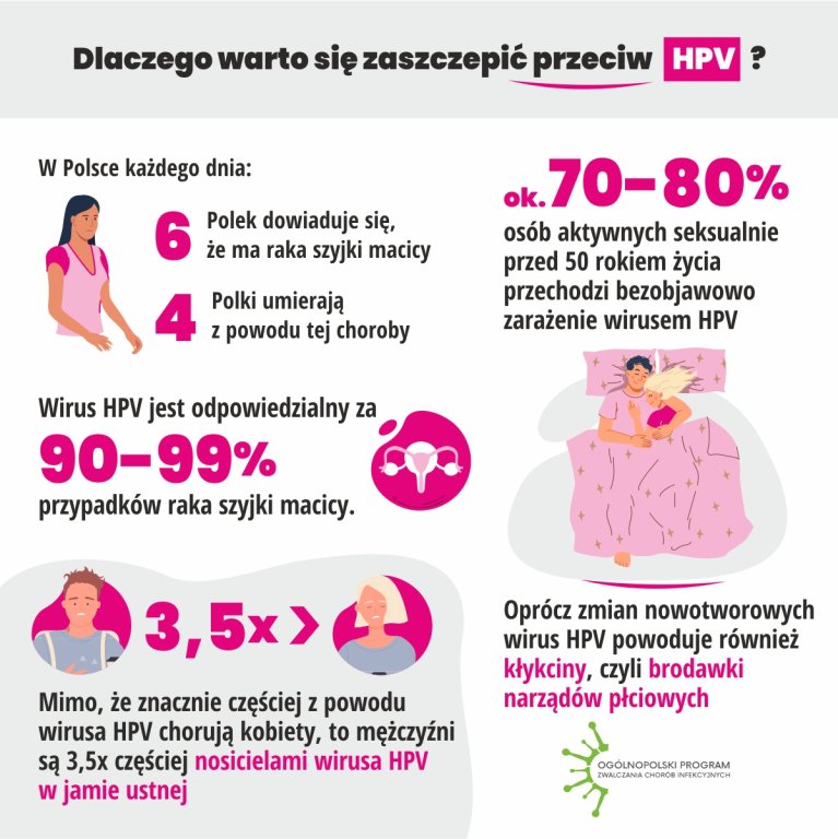 Biuro Ogólnopolskiego Programu Zwalczania Chorób Infekcyjnych przypomina o możliwości skorzystania ze szczepień przeciw wirusowi HPV.