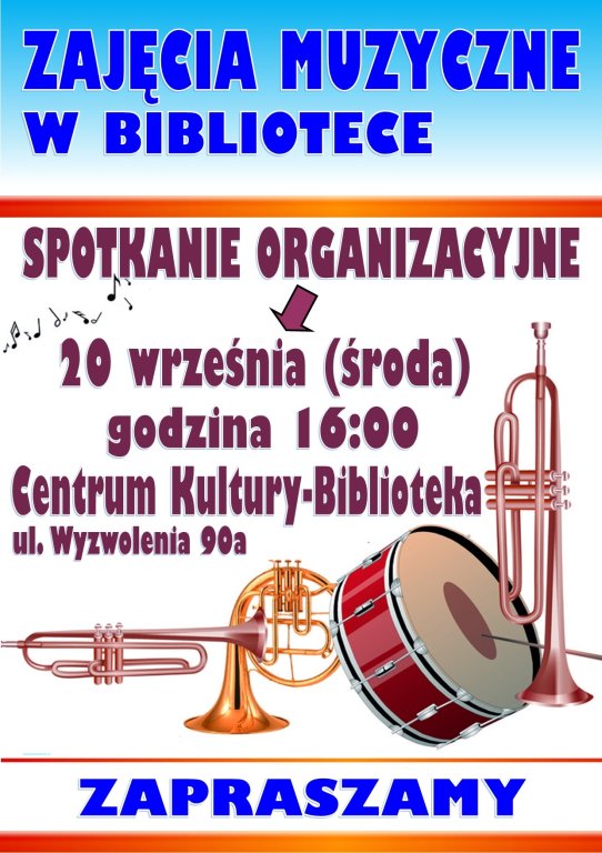 - Zajęcia muzyczne - spotkanie organizacyjne w środę 20.09.2023r. o godzinie 16:00