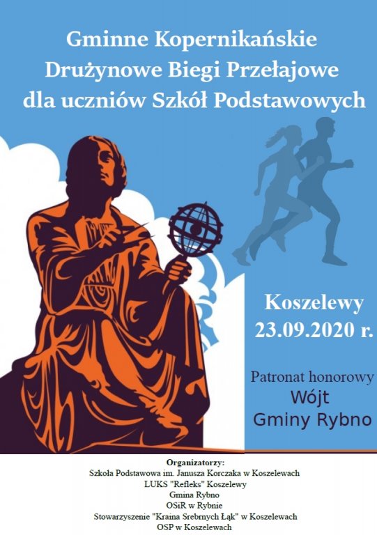 23 września 2020r. w Koszelewach odbędą się Gminne Kopernikańskie Drużynowe Biegi Przełajowe dla uczniów Szkół Podstawowych.