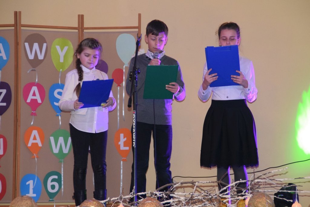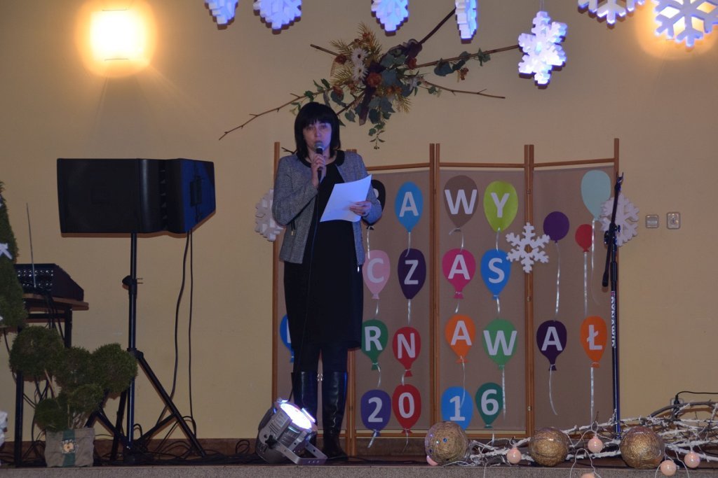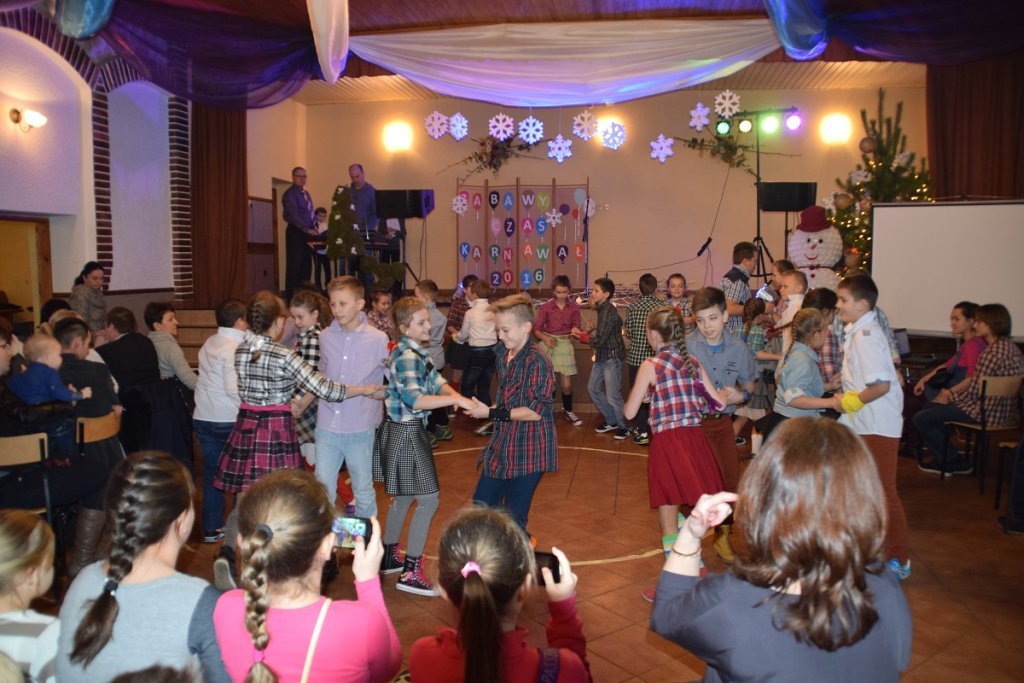 Uroczystość otworzyła Dyrektor Szkoły Podstawowej Hanna Kirchhof, która powitała wszystkich gości, rodziców, mieszkańców, a przede wszystkim dzieci, dla których to spotkanie zostało zorganizowane. W trakcie uroczystości uczniowie szkoły zaprezentowali pod przewodnictwem – Grzegorza Wiergowskiego, Iwony Cybulskiej i Marka Zielińskiego część artystyczną, pokazującą jak wiele talentów mają uczniowie tej szkoły. Potem wszyscy przy wspólnej zabawie bawili się z zespołem Krzysztofa Gmyra. Dla wszystkich uczestników zabawy przygotowana była kawa, herbata, pyszne ciasto oraz ciepły posiłek. Odbyła się także loteria fantowa, a około godziny 17:30 wszystkie dzieci odwiedził św. Mikołaj.