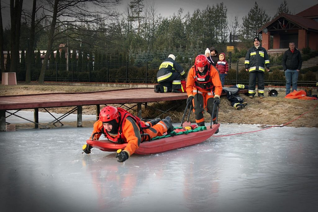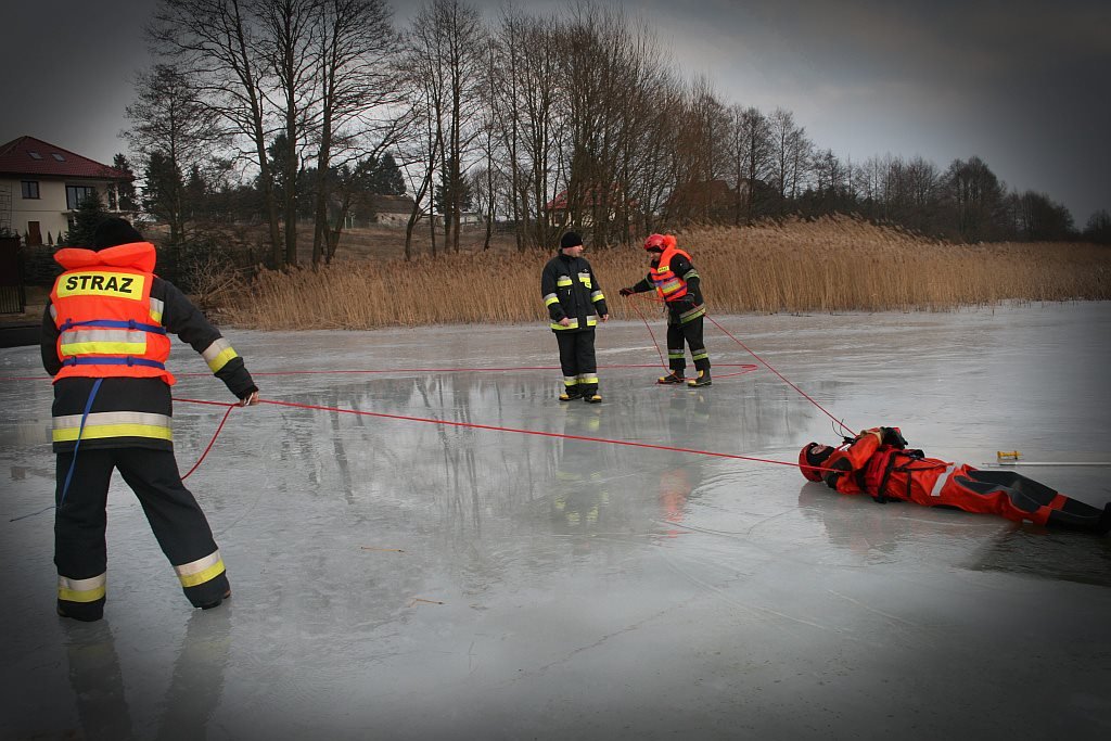 Zamarznięte akweny bardzo często przyciągają nie tylko amatorów wędkowania podlodowego, lecz także i dzieci. Niestety lód potrafi być bardzo zdradliwy. Co roku dochodzi w Polsce do wielu wypadków związanych z załamaniem się lodu pod ciężarem człowieka, dlatego też strażacy z Rybna w ramach doskonalenia swoich umiejętności zorganizowali trening związany z działaniami ratowniczymi na lodzie.