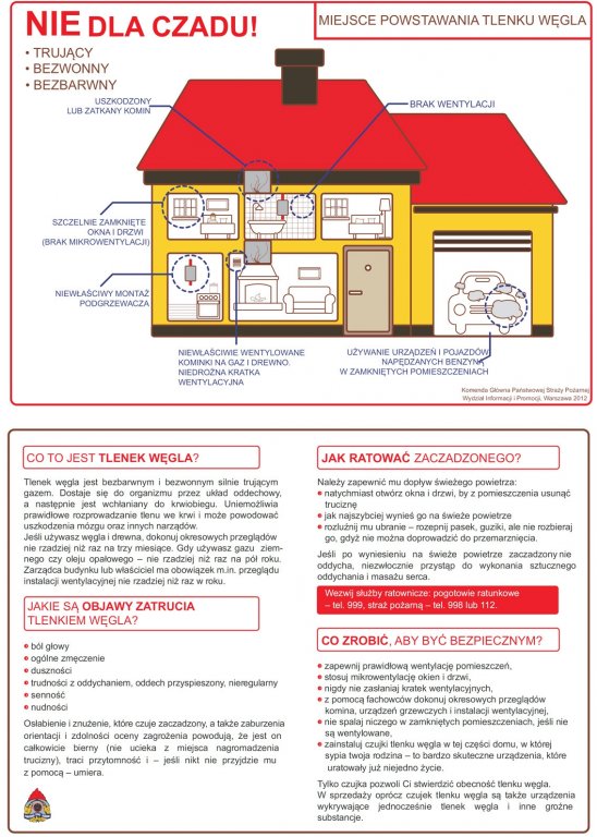 - nie bagatelizuj objawów duszności, bólów i zawrotów głowy, nudności, wymiotów, oszołomienia, osłabienia, przyspieszenia czynności serca i oddychania, gdyż mogą być sygnałem, że ulegasz zatruciu czadem; w takiej sytuacji należy natychmiast przewietrzyć pomieszczenie, w którym się znajdujemy i zasięgnąć porady lekarskiej.