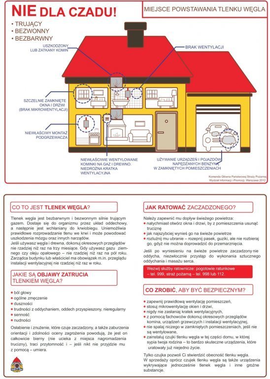 • nie bagatelizuj objawów duszności, bólów i zawrotów głowy, nudności, wymiotów, oszołomienia, osłabienia, przyspieszenia czynności serca i oddychania, gdyż mogą być sygnałem, że ulegasz zatruciu czadem; w takiej sytuacji należy natychmiast przewietrzyć pomieszczenie, w którym się znajdujemy i zasięgnąć porady lekarskiej.