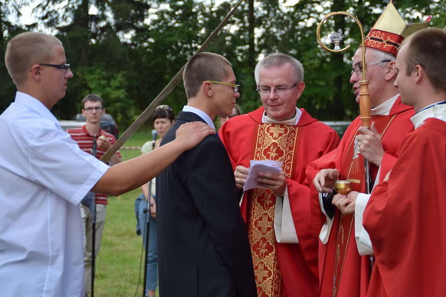 Kolejny dzień Diecezjalnych Dni Młodzieży – Hartowiec 2015 (24 lipca) – był szczególny, zwłaszcza dla Hartowieckiej młodzieży, która tego dnia przyjęła sakrament Bierzmowania. Sakrament Bierzmowania przyjmujemy w wieku większej już świadomości i samodzielności w dziedzinie wiary świętej - zasadniczo pod koniec 3 klasy gimnazjalnej, dlatego niektórzy przydają Bierzmowaniu dookreślenie „sakrament dojrzałości chrześcijańskiej”. Młodzież uczestnicząca we Mszy św. pod przewodnictwem Księdza Biskupa Józefa Szamockiego, z pełną powagą i dojrzałością przyjęła dar Ducha Świętego. Wśród bierzmowanych byli parafianie kościoła p.w. Podwyższenia Krzyża Świętego w Hartowcu. W homilii bp Szamocki podkreślał potrzebę dojrzałości religijnej młodego człowieka, umacniania wiary i szerzenia jej w najbliższym otoczeniu. Każdy katolik powinien starać się naśladować Chrystusa według słów zawartych w Ewangelii. Kościół liczy na ludzi młodych, pełnych wiary i miłości wobec drugiego człowieka.