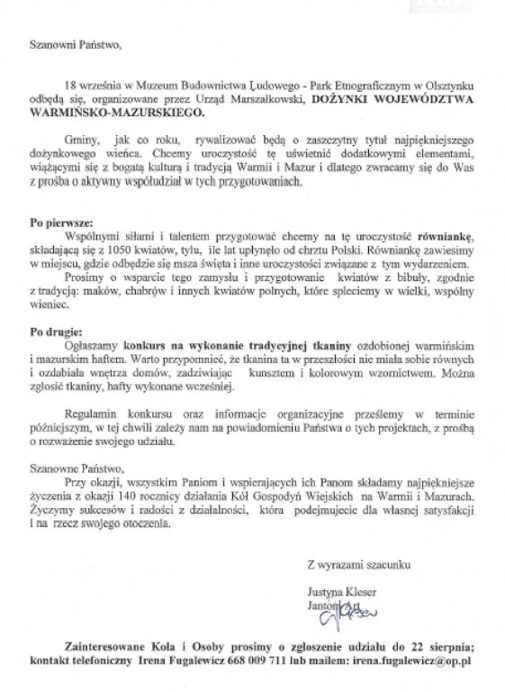 Ogłaszamy konkurs na wykonanie tradycyjnej tkaniny oraz przygotowanie równianki, składającej się z 1050 kwiatów. Szczegóły w załączeniu.