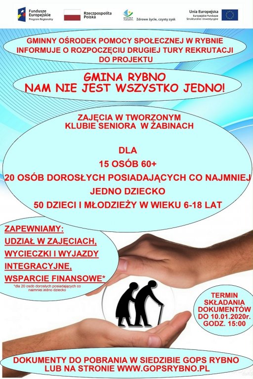 Gminny Ośrodek Pomocy Społecznej w Rybnie informuje o rozpoczęciu drugiej tury rekrutacji do projektu „Gmina Rybno — Nam nie jest wszystko jedno!"