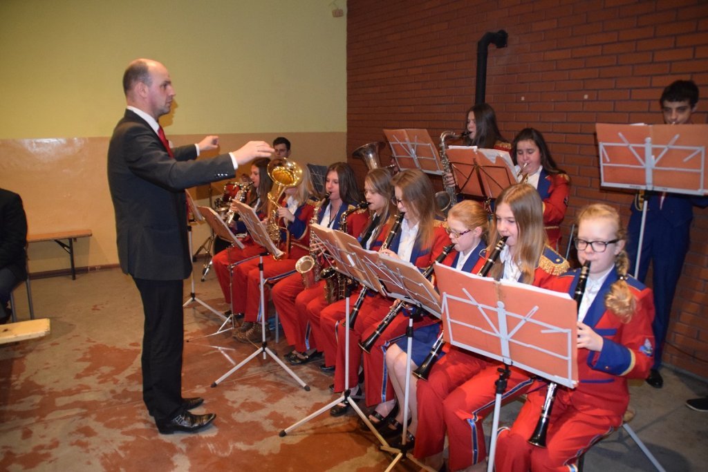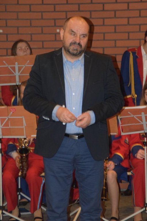 Grzegorz Januszewski składa podziękowania kierownikowi Gminnej Biblioteki Publicznej w Rybnie – Jarosławowi Rolkowskiemu oraz Młodzieżowej Orkiestrze Dętej z Rybna za świetny występ podczas uroczystości.
