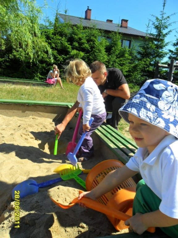 Dzieci zwiedziły pomieszczenia przedszkolne i plac zabaw. Uczestniczyły w zabawach dowolnych i integracyjnych. Korzystały ze sprzętu ogrodowego i bawiły się w piaskownicy. Poznały zasady bezpieczeństwa i zgodnej zabawy z rówieśnikami.