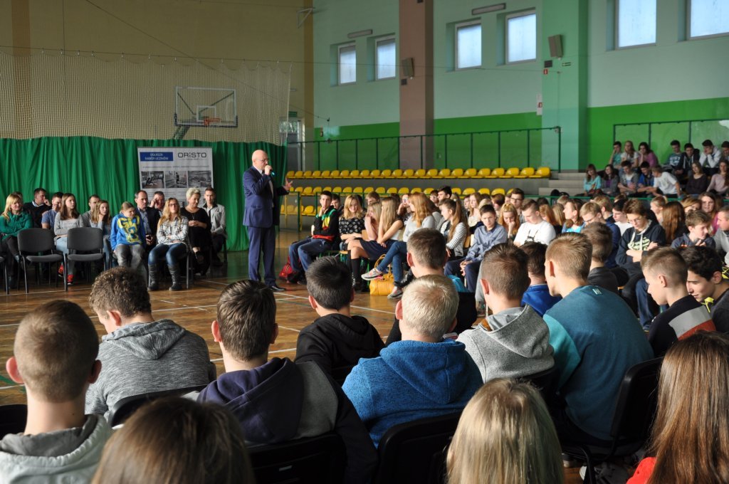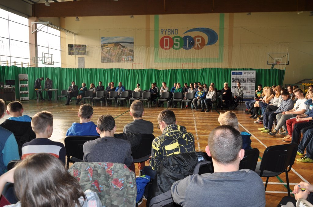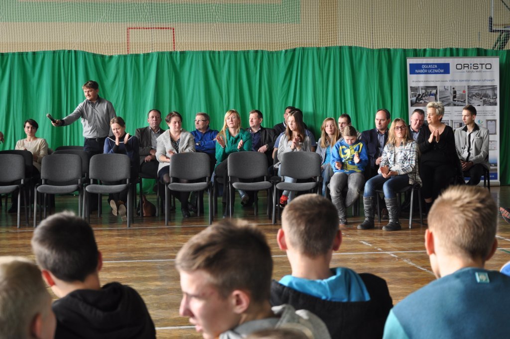 Organizatorami byli: Wójt Gminy Rybno, Zespół Szkół w Rybnie i Niepubliczne Gimnazjum w Hartowcu. Mieliśmy zaszczyt gościć Warmińsko-Mazurskiego Wicekuratora Oświaty p. Dorotę Anuszkiewicz, Wicestarostę Działdowskiego p. Mariana Brandta, Starszego Cechu Rzemieślników i Przedsiębiorców w Lubawie i jednocześnie właściciela firmy Oristo p. Jerzego Ornowskiego, p. Marię Karwacką i Zofię Zyborowicz PUP w Działdowie, Dyrektora Publicznego Gimnazjum im. J. Korczaka w Dąbrównie p. Alojzego Kurowskiego , Dyrektora Gminnego Zakładu Gospodarki Komunalnej w Rybnie p. Marka Wilbrandta, kierownika referatu Oświaty w Gminie Rybno p. J. Sokołowskiego. Z niezwykłą przyjemnością powitaliśmy pracodawców naszych uczniów. P. A. Kołpackiego – przedstawiciela Firmy Szynaka Meble Lubawa, p. Adama Malinowskiego Firma Handlowo Usługowa Rybno, p. Jarosława Labickiego Usługi Remontowo-Budowlane Rybno, p. Wiesława Mergalskiego Karczma Nad Sandelą Lubawa, p. Marcina Szczepańskiego przedst. Firmy Monter Rybno, p. Zbigniewa Górskiego Auto-Naprawa Żabiny, przedstawicieli Market Rybka Rybno z właścicielką p. Magdaleną Szczepańską, p. Czesława Stanisława Libert Ciastkarnia Ptyś Działdowo, przedst. Marketu Delikata p. J. Krukowską, p. M. Zelmańskiego Blacharstwo Lakiernictwo Mechanika Pojazdowa Lewałd Wielki, p. Mirona Arasimskiego Zakład Mechaniki Pojazdowej Rybno. Przybył także absolwent pierwszego rocznika ZSZ w Rybnie p. Robert Świniarski. W spotkaniu wzięli udział uczniowie Publicznego Gimnazjum im. J. Korczaka w Dąbrównie, Zespołu Szkół w Nowym Grodzicznie, Niepublicznego Gimnazjum im. Jana Pawła II w Hartowcu i Gimnazjum im. M. Skłodowskiej-Curie w Rybnie.