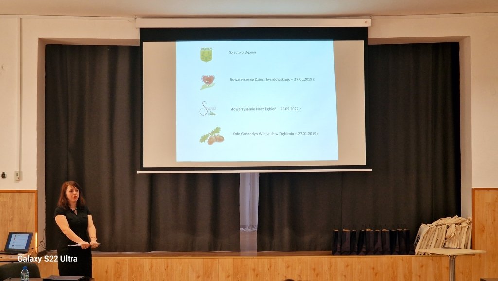 Swoją prezentację dot. pozyskiwania środków zewnętrznych dla sołectw przedstawiła Pani Anna Piątkowska-sołtys sołectwa Dębień. Kolejnym punktem spotkania było szkolenie dotyczące opłat ZAIKS, które przeprowadził Pan Dariusz Dubina- przedstawiciel Stowarzyszenia Autorów ZAIKS.