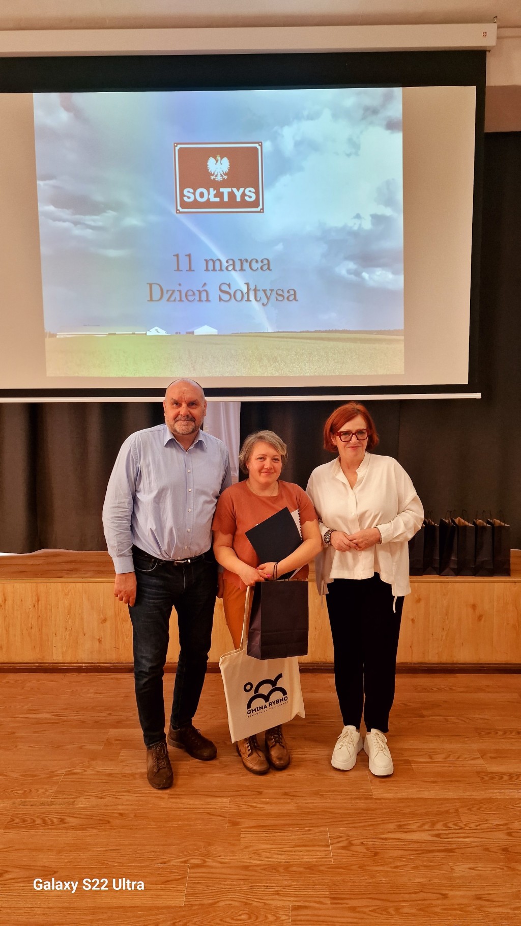 Po szkoleniu sołtysi Gminy Rybno otrzymali od Wójta Gminy Rybno Pana Tomasza Węgrzynowskiego nowe statuty swoich sołectw oraz podarunki z okazji Dnia Sołtysa. Życzenia złożyli Wójt Gminy Rybno Tomasz Węgrzynowski oraz Pani Katarzyna Królak-Poseł na Sejm RP.