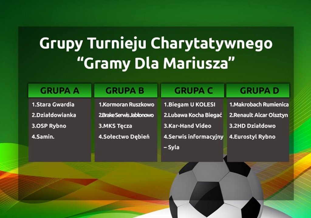 W niedzielę, 15 kwietnia o godz. 9:00 w hali Ośrodka Sportu i Rekreacji w Rybnie odbędzie się Turniej Charytatywny – „Gramy dla Mariusza” organizowany przez grupę młodzieży „W Rękach Młodych”, Gminę Rybno, OSiR Rybno oraz Serwis informacyjny – Syla.