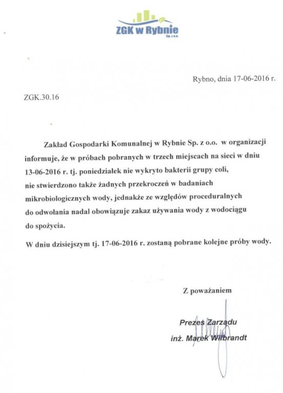 Informacja dotycząca badań wody