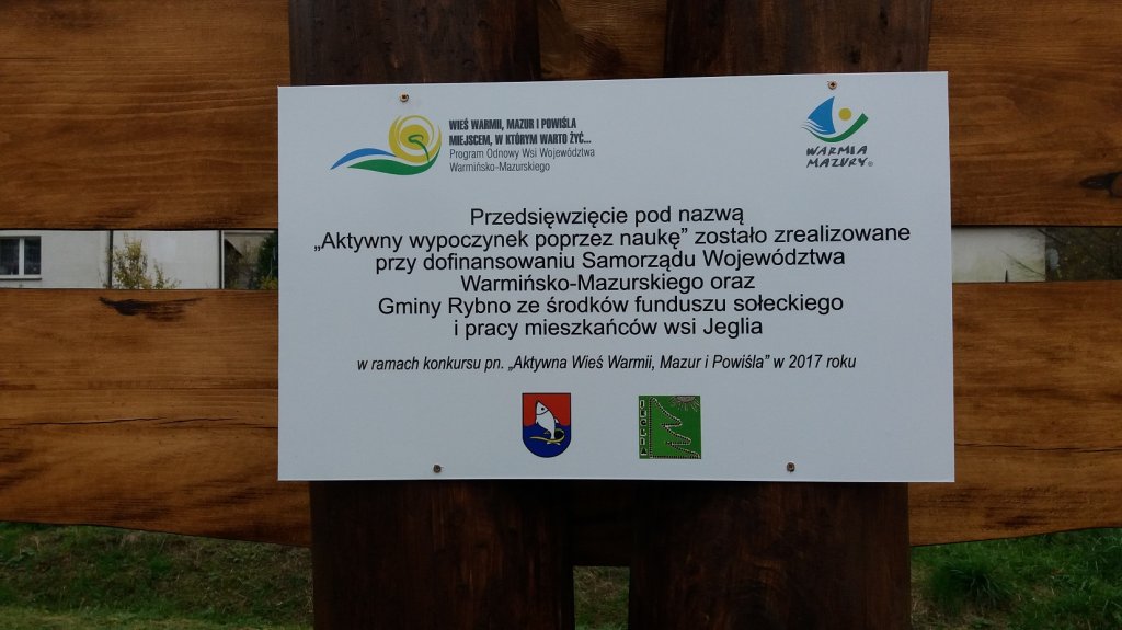 W ramach konkursu „Aktywna Wieś Warmii, Mazur i Powiśla” w 2017 roku dofinansowanego w 50% ze środków Samorządu Województwa Warmińsko-Mazurskiego w Olsztynie w kwocie 8 534.00 zł, wkład finansowy gminy z funduszu sołeckiego Sołectwa Jeglia w kwocie 7 500,00 zł, oraz wkład pozafinansowy w formie pracy nieodpłatnej wycenionej na 1 034,00 zł. Łączna wartość zadania 17 068,00 złotych. Głównym celem konkursu było zaangażowanie mieszkańców do pracy społecznej na rzecz wsi.