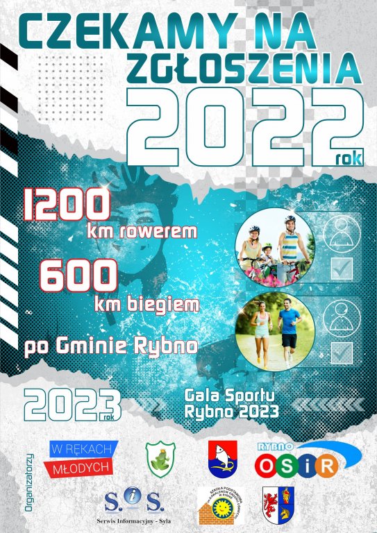 Grupa młodzieży „W Rękach Młodych” zaprasza do wzięcia udział w tegorocznych rywalizacjach sportowych: „1200 km rowerem po gminie Rybno” oraz „600 km biegiem po gminie Rybno” w 2022 roku. Współorganizatorem rywalizacji jest: Gmina Rybno, Starostwo Powiatowe w Działdowie, OSiR Rybno, Stowarzyszenie Żabianka oraz Szkoła Podstawowa im. Kawalerów Orderu Uśmiechu w Rybnie.