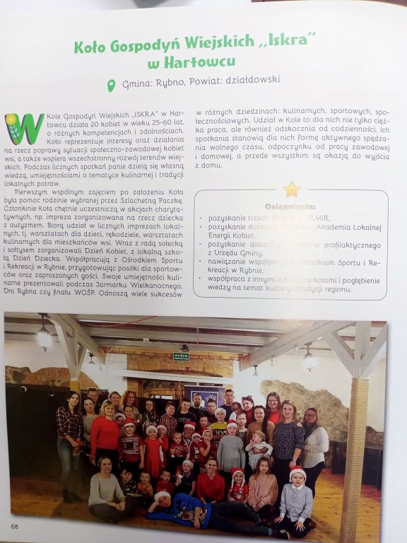 Koło Gospodyń Wiejskich "Iskra" z Hartowca znalazło się w wydanej przez Urząd Marszałkowski Województwa Warmińsko-Mazurskiego publikacji pod tytułem "Koła Gospodyń Wiejskich Warmii i Mazur – liderki na obszarach wiejskich".