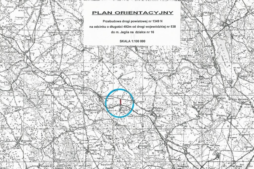 Został ogłoszony przetarg na Przebudowę drogi powiatowej nr 1349 N na odcinku o długości 492m od drogi wojewódzkiej nr 538 do m. Jeglia na działce nr 16. Otwarcie ofert nastąpi 10 września o godzinie 12:00. Planowany termin wykonania robót do 30 listopada 2020 r.