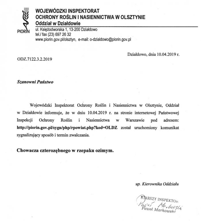 Komunikat sygnalizacyjny WIORiN na zdjęciu poniżej.
