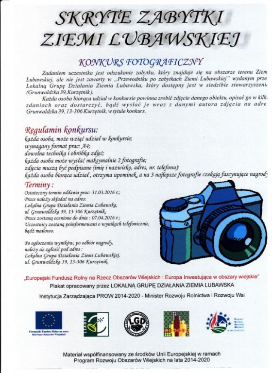 Lokalna Grupa Działania "Ziemia Lubawska" ogłasza konkurs fotograficzny "Skryte Zabytki Ziemii Lubawskiej".