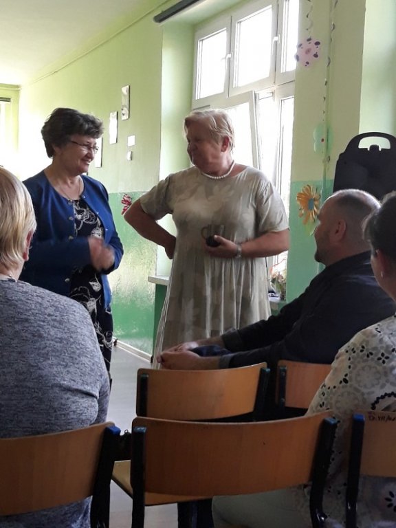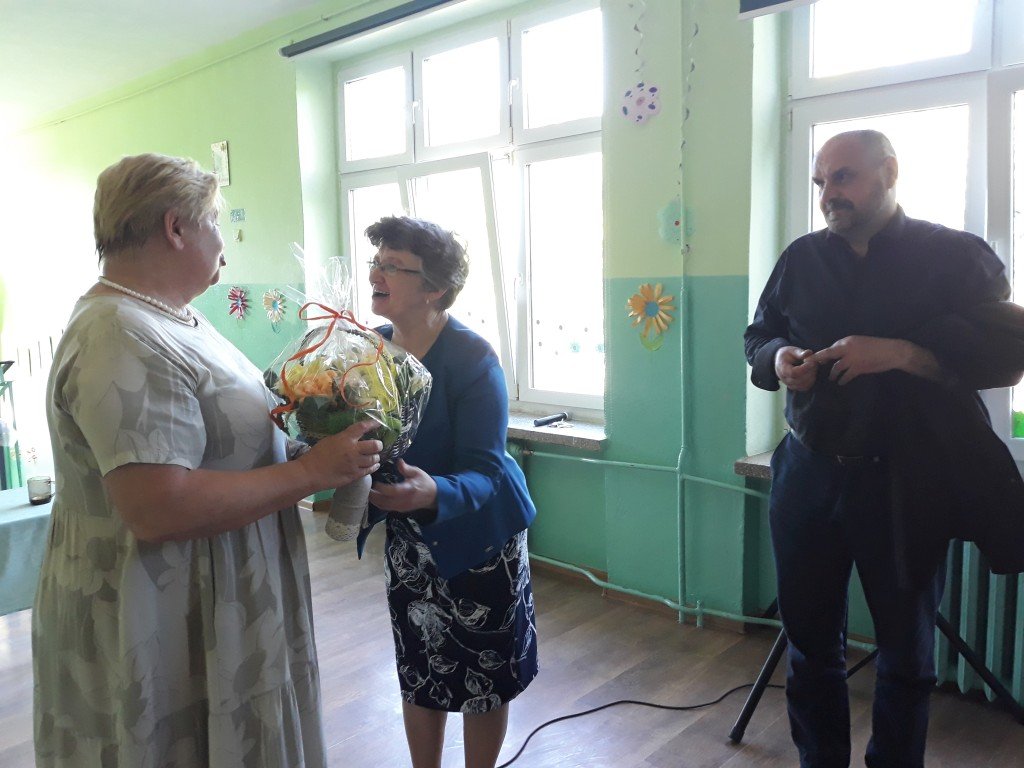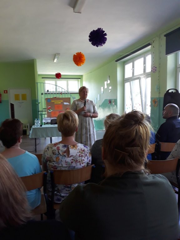 Pan Wójt Tomasz Węgrzynowski przedstawił dorobek naszego gościa, Honorowego Obywatela Gminy Rybno. Pani Doktor zajmuje się propagowaniem wiedzy psychologicznej współpracując w tym zakresie jako ekspert z prasą, stacjami radiowymi i telewizyjnymi. Spotkanie cieszyło się dużym zainteresowaniem słuchaczy. Pani Doktor niezwykle ciekawie i przystępnie opowiadała o sztuce wychowania dzieci. Zgromadzeni z wielkim zainteresowaniem słuchali słów i rad pani psycholog. W imieniu całej społeczności szkolnej pani dyrektor Barbara Kornelska serdecznie podziękowała pani Aleksandrze Piotrowskiej za poświęcony czas wręczając ręcznie wykonany przez członkinie Stowarzyszenia Kraina Srebrnych Łąk kosz kwiatów.