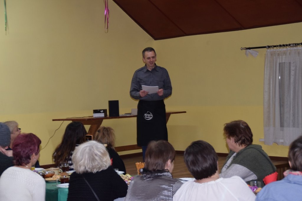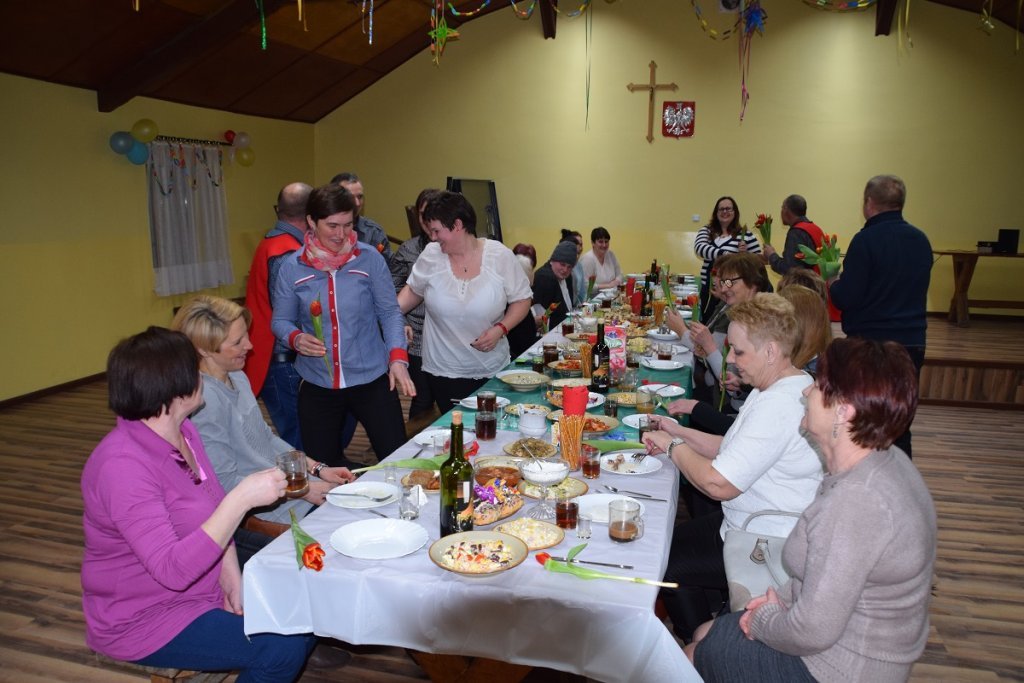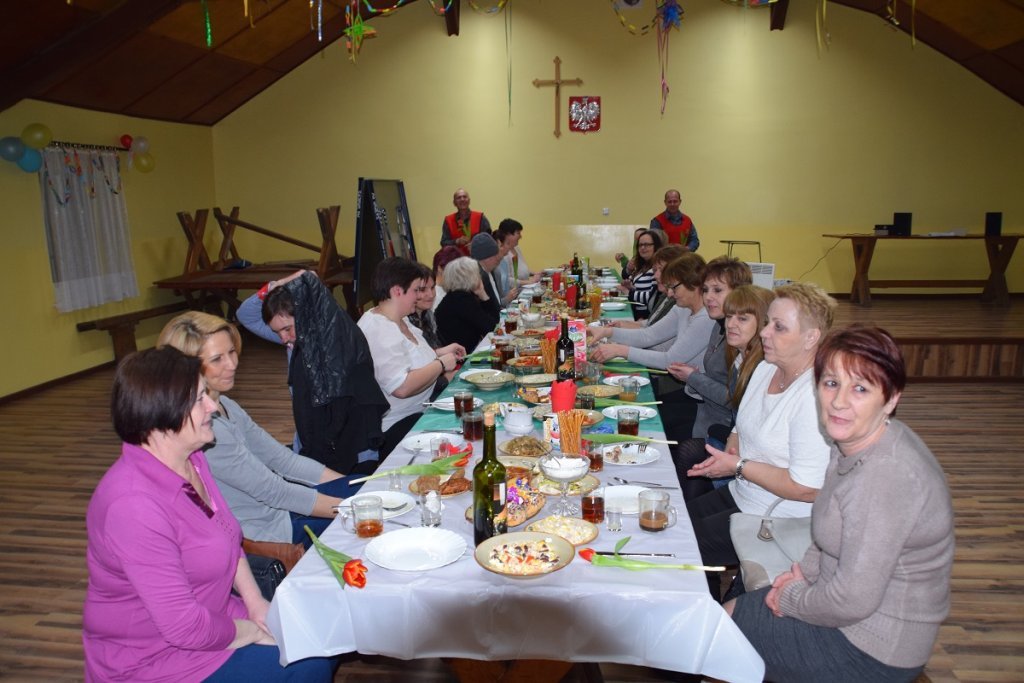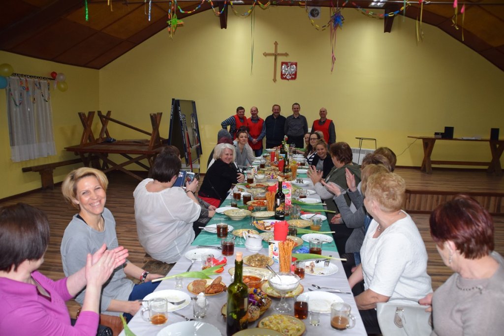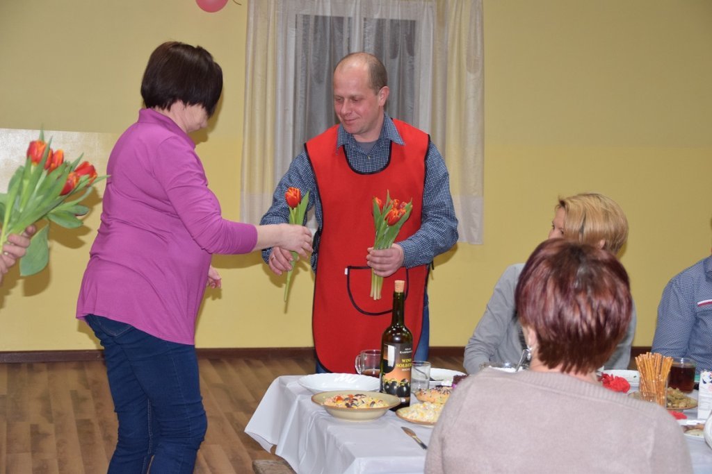 Każda z pań przygotowała na specjalną uroczystość potrawę, a panowie zapewnili miłą obsługę, która wzorowo i profesjonalnie wcieliła się w role kelnerów imprezy. Wiceprzewodniczący rady Dariusz Tara wyrecytował paniom satyryczny wierszyk, który rozbawił wszystkich do łez. Potem radny wraz z sołtysem – Adamem Kasprowiczem złożyli paniom najserdeczniejsze życzenia z okazji Dnia Kobiet. Następnie cała ekipa „kelnerów” wręczyła paniom symboliczne tulipany.
