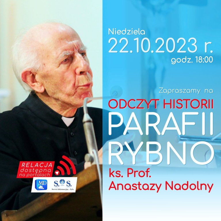 Mamy zaszczyt serdecznie zaprosić mieszkańców Rybna oraz okolicznych miejscowości na fascynujący Odczyt Historii o Parafii Rybno, który poprowadził Ksiądz Profesor Anastazy Nadolny w kościele pw. Najświętszego Serca Pana Jezusa w Rybnie. Wydarzenie to zostało nagrane i zostanie odtworzone w najbliższą niedzielę, 22 października 2023 roku, o godzinie 18:00.