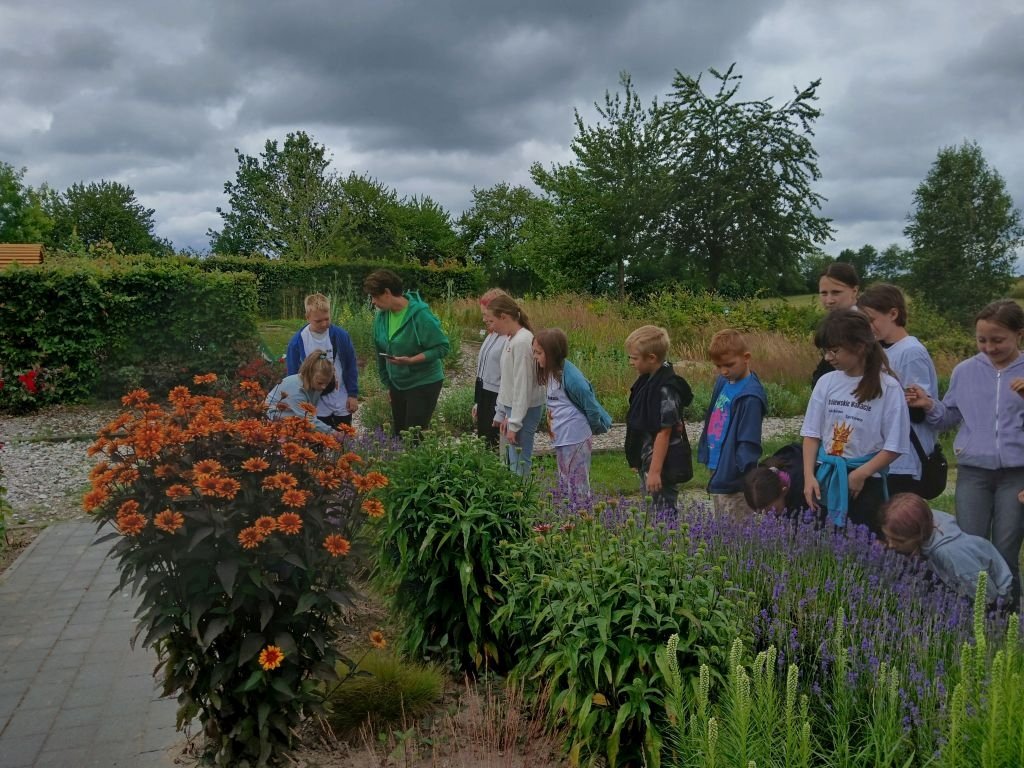 Jednym z ciekawych dni półkolonii był wyjazd do miejscowości Sąpy, do gospodarstwa edukacyjnego „Ziołowy Dzbanek”. Pod kierunkiem pani prowadzącej zajęcia dzieci miały okazję poznać różne gatunki roślin zielnych, zarówno te znane z kuchni, jak melisa czy mięta, jak i mniej oczywiste, wykorzystywane w medycynie naturalnej czy kosmetologii. Dowiedziały się, jak rozpoznawać poszczególne rośliny, kiedy najlepiej je zbierać i do czego można je wykorzystać w codziennym życiu.