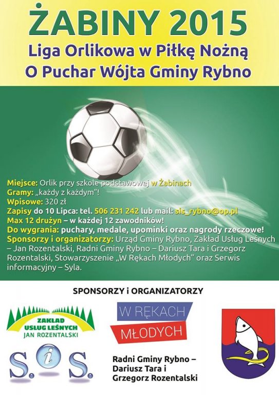 Zapisy na ligę do 10 lipca pod numerem telefonu 506-231-242 lub drogą email: sis_rybno@op.pl , wpisowe 320 zł od drużyny, gramy systemem - „każdy z każdym”, max 12 zespołów! Do wygrania: Puchary, medale, statuetki, upominki oraz nagrody rzeczowe!