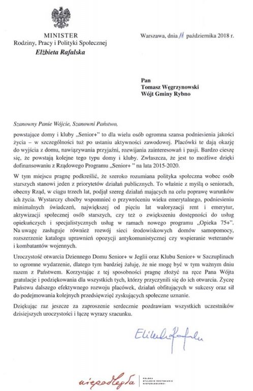 List Ministra Rodziny, Pracy i Polityki Społecznej