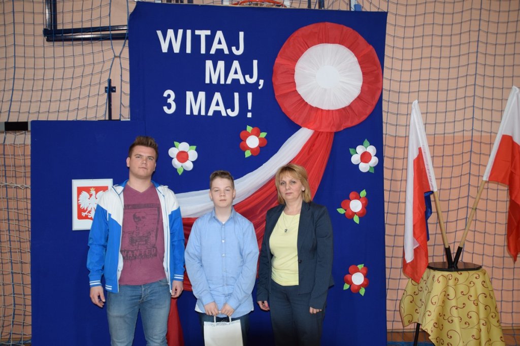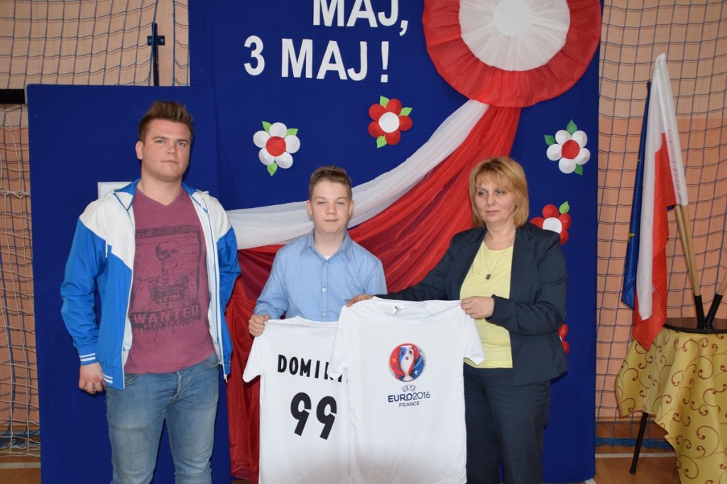 Małgorzacie Adamskiej za zajęcie I miejsca oraz Dominikowi Kornatowskiemu za zajęcie II miejsca nagrody wręczali: Dyrektor Szkoły Podstawowej w Rybnie – Bożena Dobrzyńska, Sekretarz UG w Rybnie – Jolanta Jendrycka oraz Radny Gminy Rybno – Sylwester Kasprowicz.